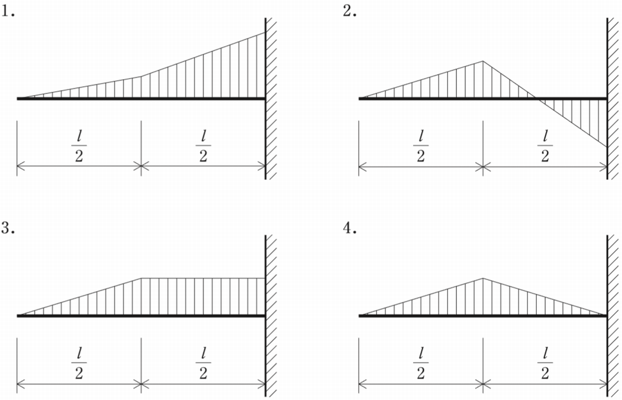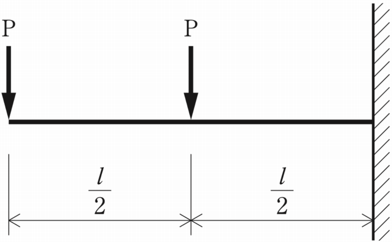 図に示す片持梁に同じ大きさの集中荷重Pが作用したときの曲げモーメント図として,